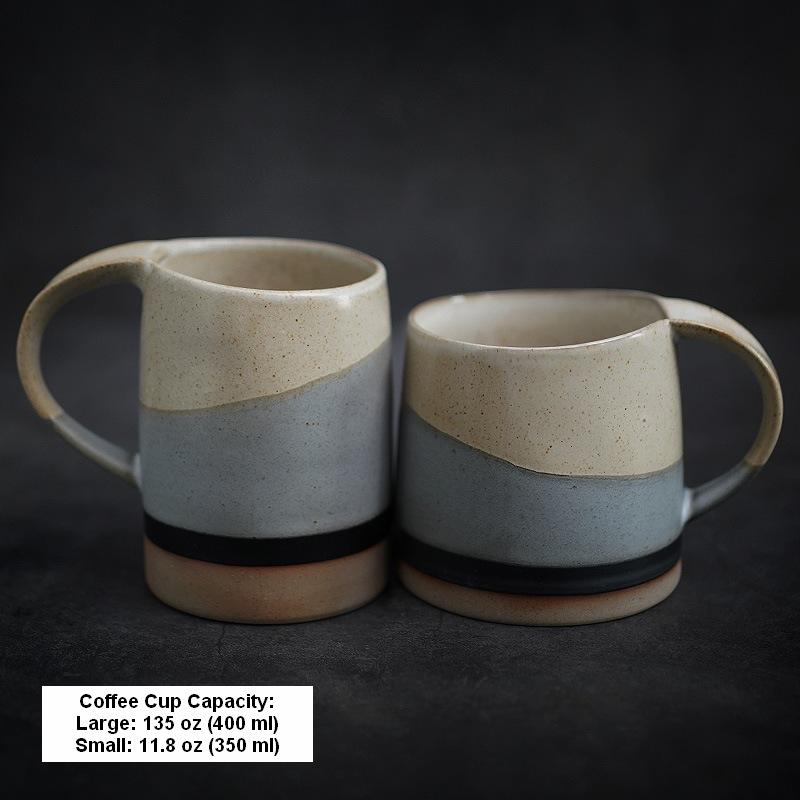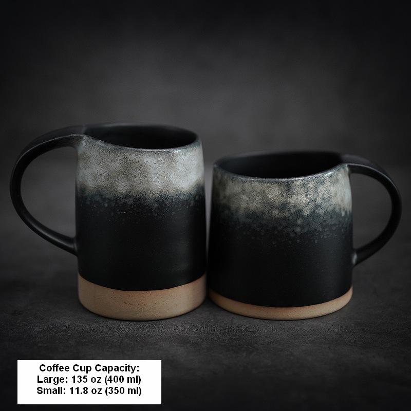 Large capacity pottery coffee cup, "Day and Night".