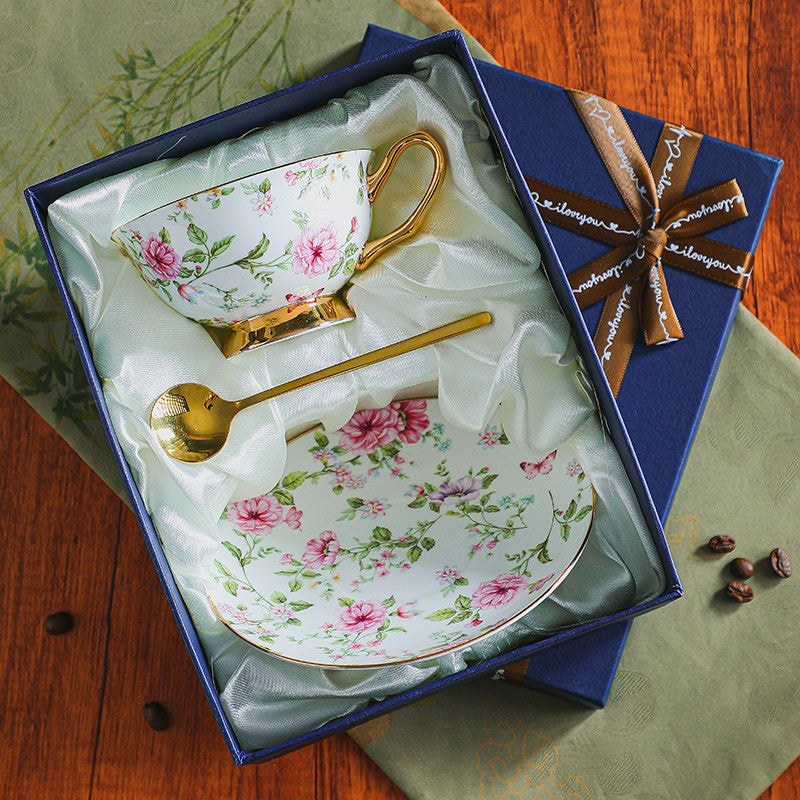 Elegant British Ceramic Coffee Cup with Saucer Set of 2 Cups, Floral British Tea Cup and Saucer in Gift Box, Porcelain Tea Cup and Saucer Set-HomePaintingDecor