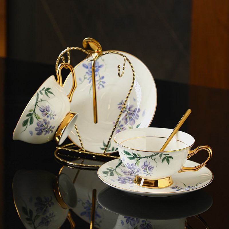 Elegant Ceramic Coffee Cup and Saucer, 7.4 oz Floral Porcelain Tea Cup and Saucer Set, Flower Porcelain Cup and Saucer Set, Beautiful British Flower Tea Cups-HomePaintingDecor