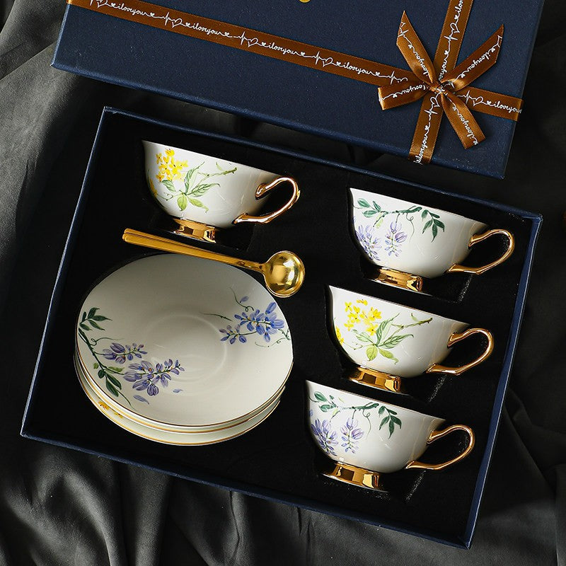 Porcelain Tea Cup Saucer Set, Unique Tea Cup and Saucer in Gift Box, 7.4 oz Floral Ceramic Coffee Cup with Saucer, Beautiful British Tea Cup and Saucer-HomePaintingDecor