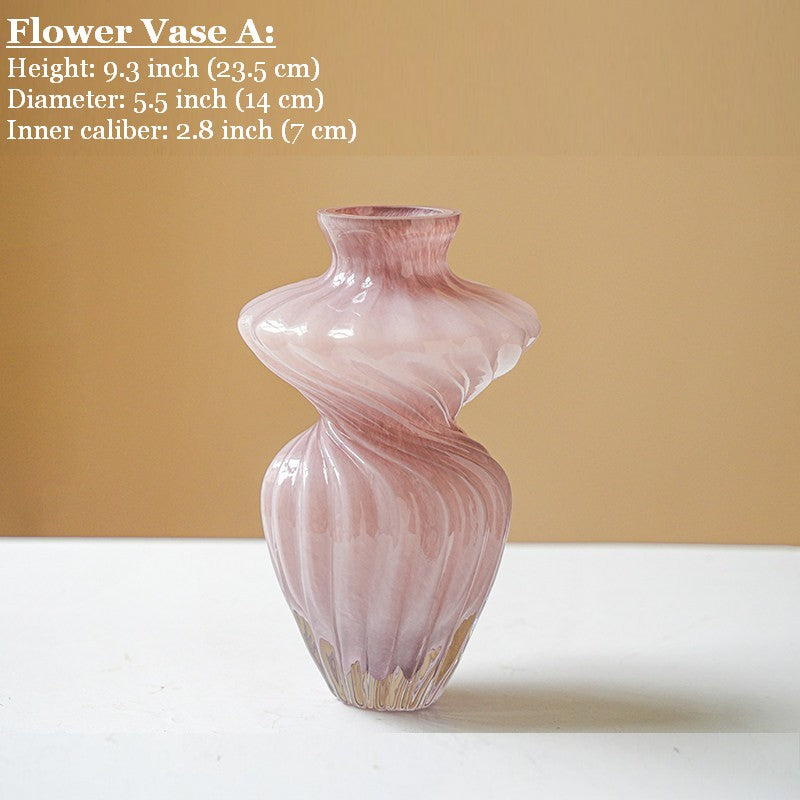 Mid Century Pink Vases for Flowers, Modern Vases for Living Room, Handmade Contemporary Glass Vases, Unique Decorative Glass Vase, Centerpiece Vases on Table-HomePaintingDecor