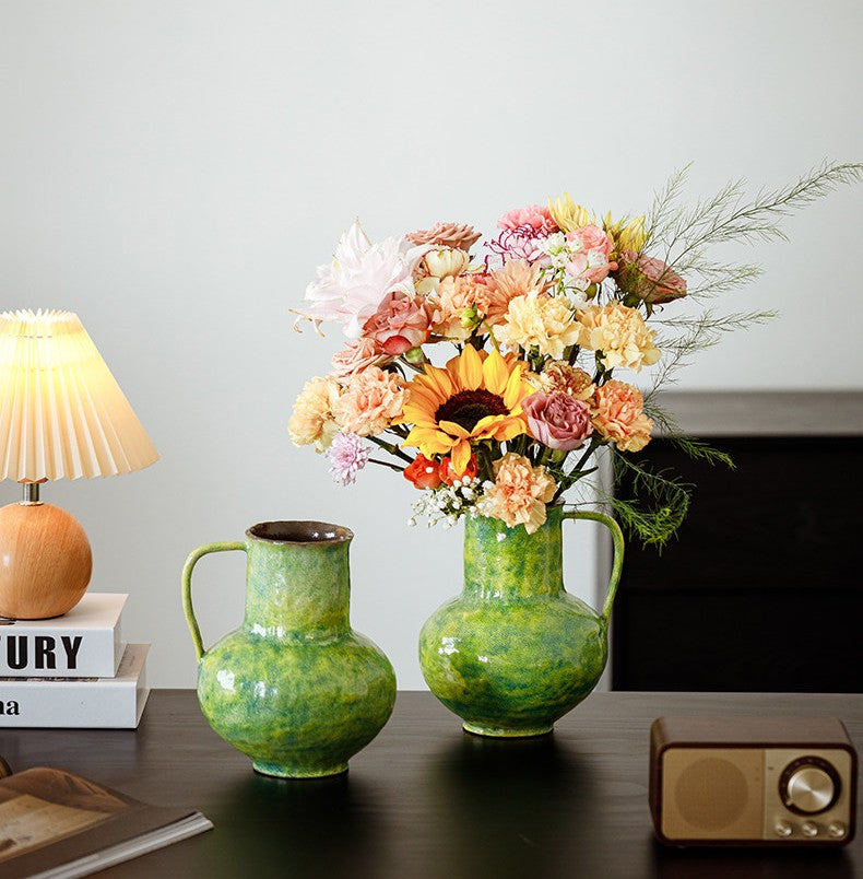 Modern Pottery Flower Vases, Handmade Water Holding Flower Vases, Pottery Bud Vases, Large Green Flower Vases on Table, Centerpiece on Dining Table