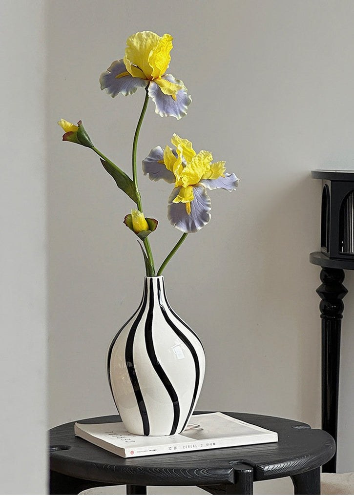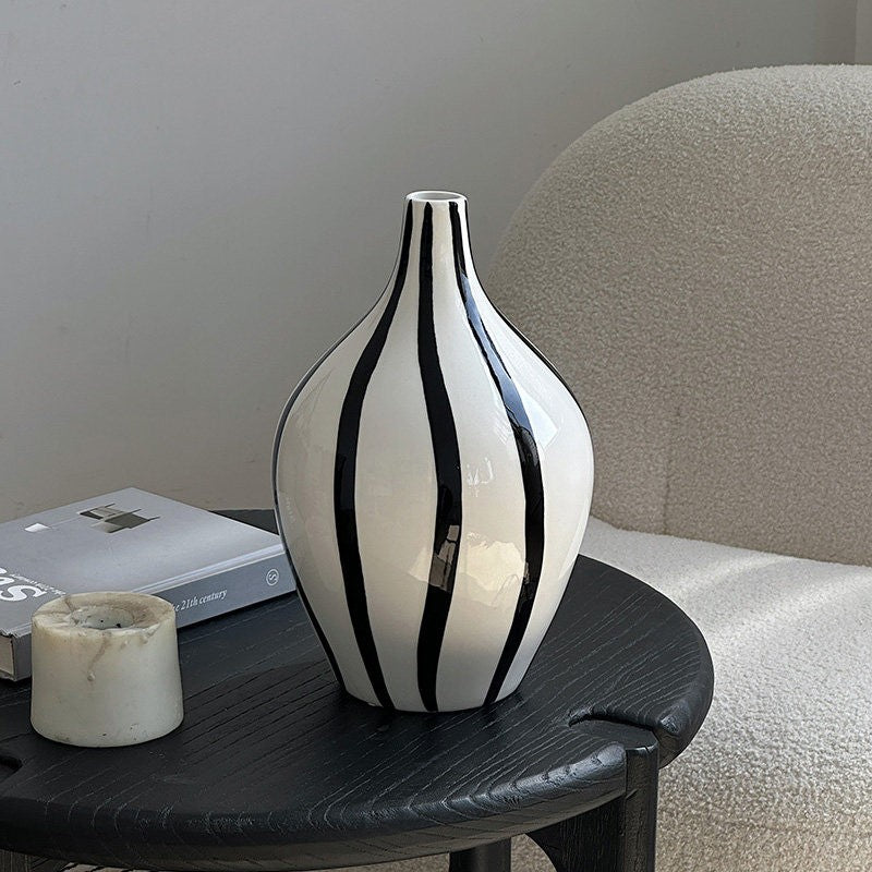 Porcelain Flower Vases, Modern Flower Vases on Table, Water Holding Flower Vases, Black and White Striped Ceramic Vase