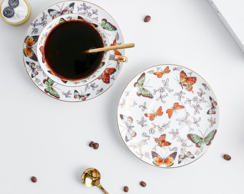 Unique Butterfly Coffee Cups and Saucers, Creative Butterfly Ceramic Coffee Cups, Beautiful British Tea Cups, Creative Porcelain Tea Cup Set