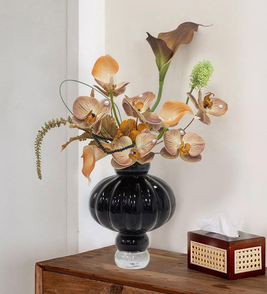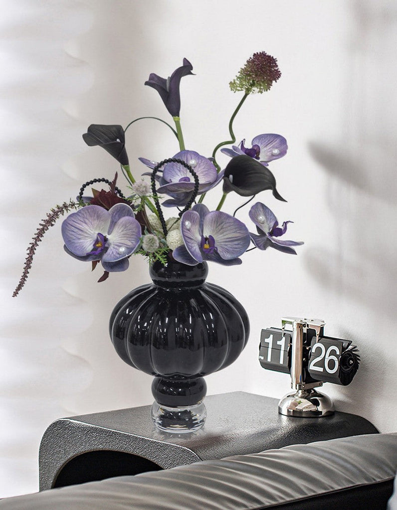 Unique Contemporary Vases for Modern Home Decor, Black Glass Bud Vases, Handmade Liuli Vases, Centerpiece Vases on Table, Black Glaze Vase