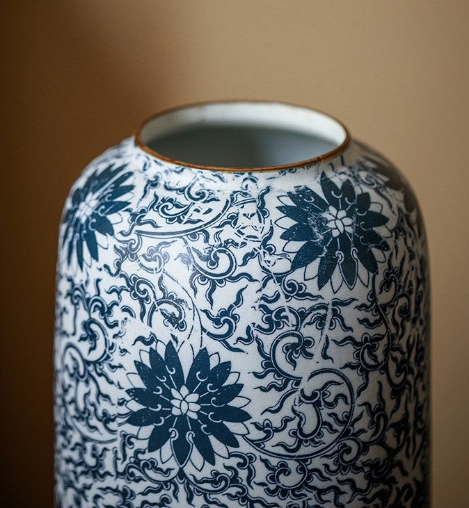 Vintage Bouquet Flower Vases, Centerpiece on Dining Table, Large Blue Flower Vase on Table, Handmade Porcelain Flower Vases Urn, Water Holding Flower Vases