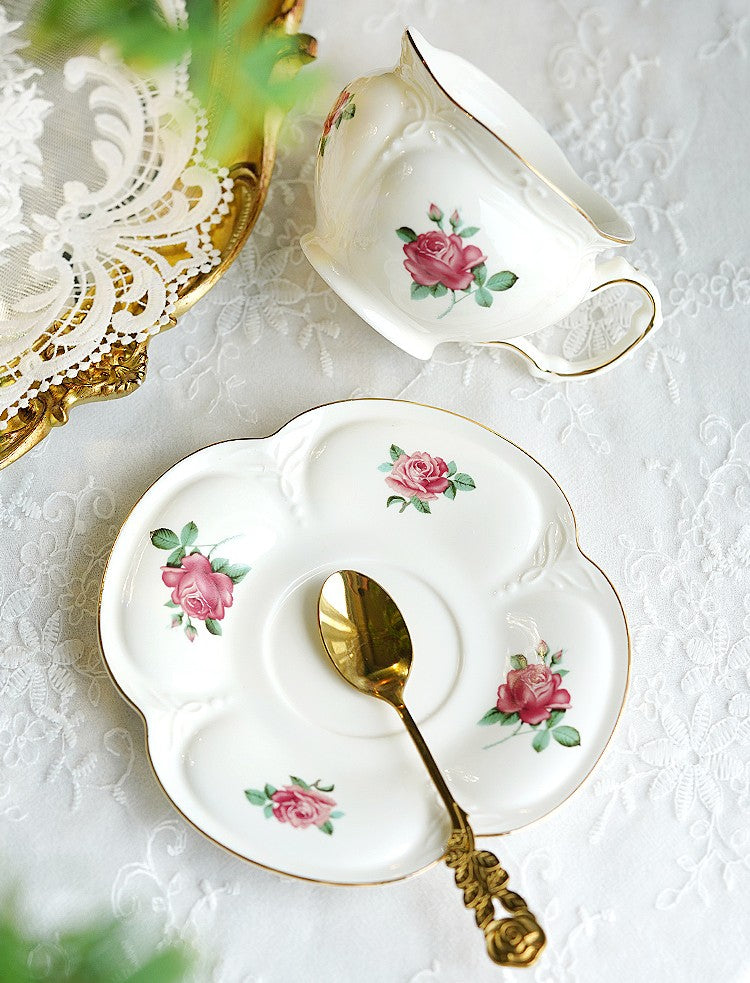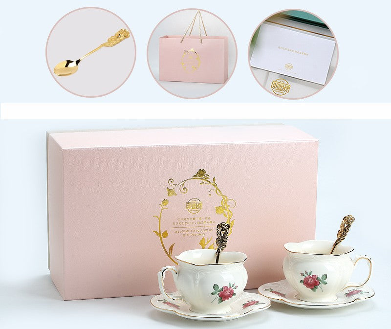 British Royal Ceramic Cups for Traditional Afternoon Tea, 7.4 oz Ceramic Coffee Cups, Rose Porcelain Tea Cup Saucer Set, 6.8 oz Tea Cup and Saucer in Gift Box