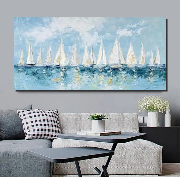 Large Wall Art Ideas for Living Room, Paintings for Living Room, Acrylic Painting on Canvas, Modern Paintings for Bedroom, Sail Boat Painting, Original Canvas Art