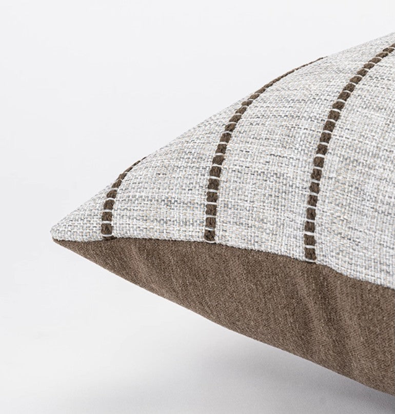 All pillow covers are sewn professionally, over-locked with finished edges to prevent fraying and has invisible zipper enclosures. This provides long lasting, durable covers that will stay straight and beautiful over time, which makes for a clean professional look.