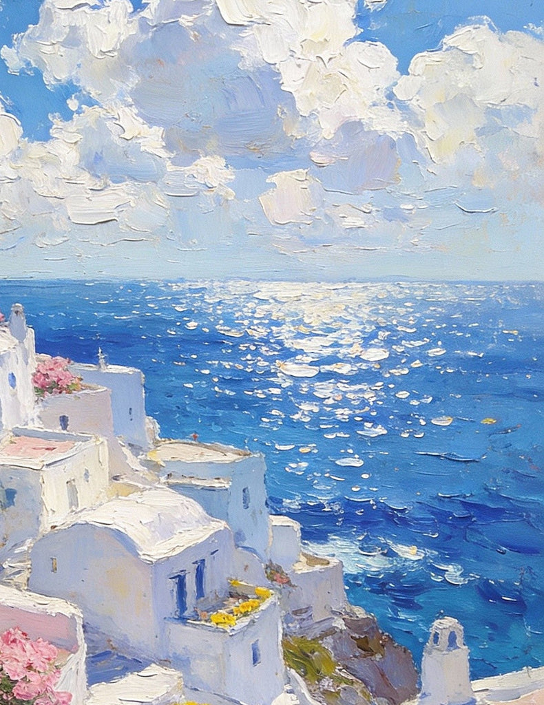 Aegean Summer - Infinite Azure, Seashore Beach Paintings, Small Landscape Oil Paintings, Original Small Paintings, Small Paintings on Canvas, Hand Painted Art-HomePaintingDecor