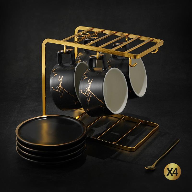Each set includes 1* coffee cup, 1*stirring spoon and 1 saucer, 7.4 ounce (220ml) capacity ceramic coffee mugs, perfect for serving espresso, cappuccinos, lattes or tea. It has enough space for coffee with milk bubbles, avoiding spilling.