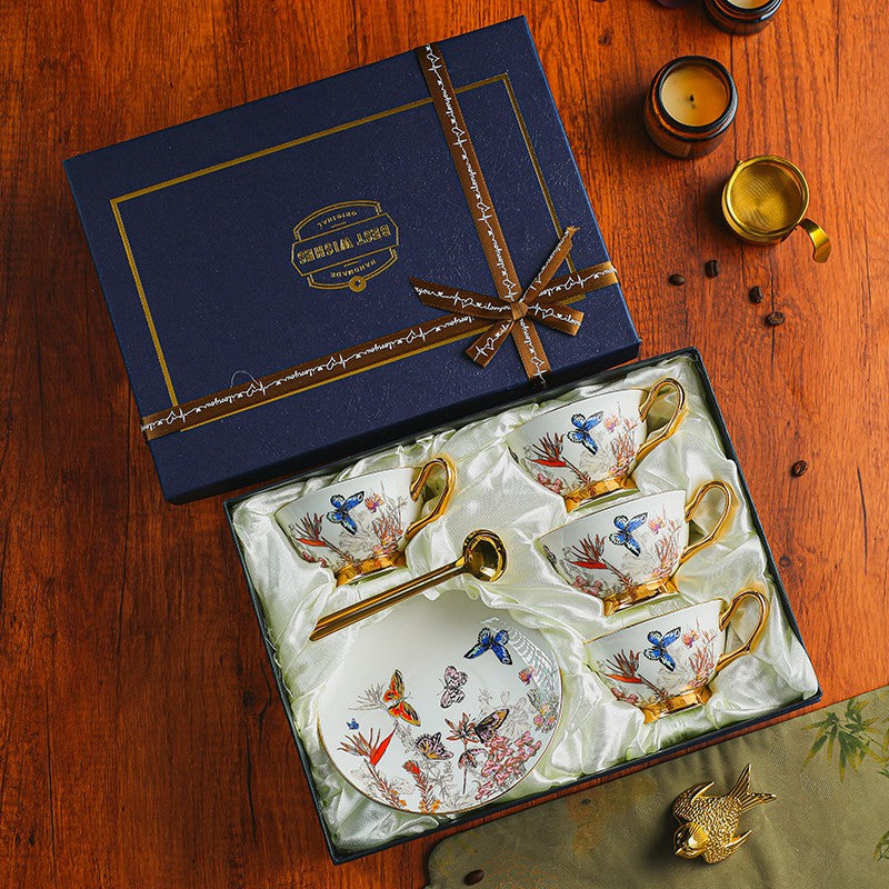 British Afternoon Tea Cup and Saucer Set, Ceramic Coffee Cups in Gift Box, Butterfly Pattern Porcelain Tea Cup and Saucer Set-HomePaintingDecor