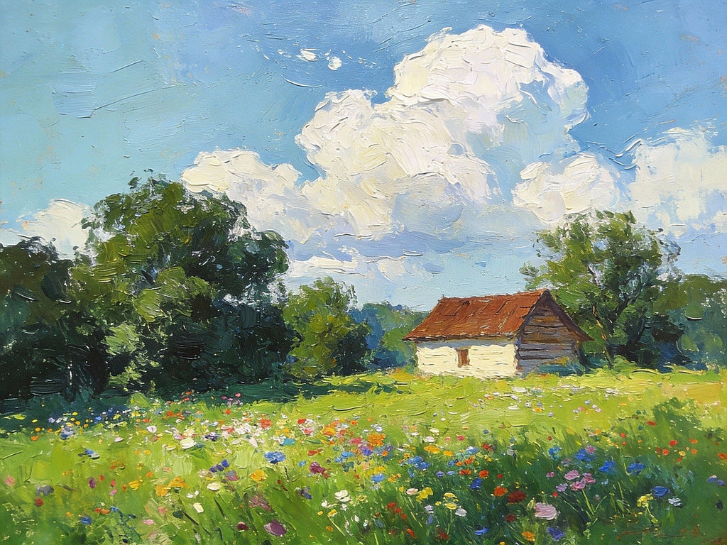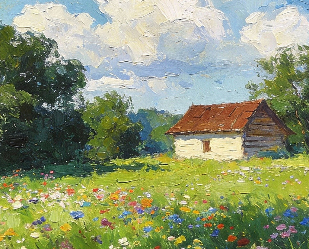 Cottage on the Green, Under an Open Sky, Hand Painted Canvas Art, On Canvas Small Paintings, Small Landscape Paintings, Original Oil Paintings, Small Paintings As Birthday Gift-HomePaintingDecor