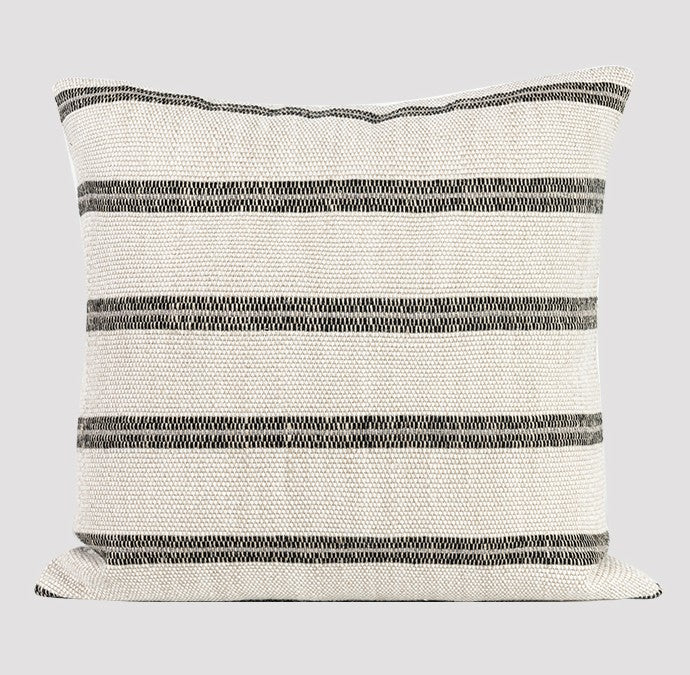 All pillow covers are sewn professionally, over-locked with finished edges to prevent fraying and has invisible zipper enclosures. This provides long lasting, durable covers that will stay straight and beautiful over time, which makes for a clean professional look.