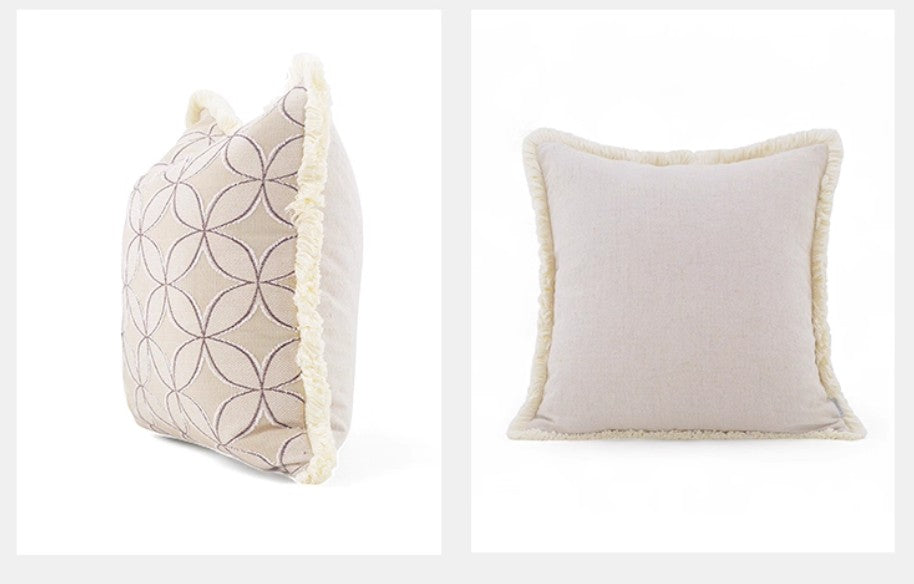 All pillow covers are sewn professionally, over-locked with finished edges to prevent fraying and has invisible zipper enclosures. This provides long lasting, durable covers that will stay straight and beautiful over time, which makes for a clean professional look.