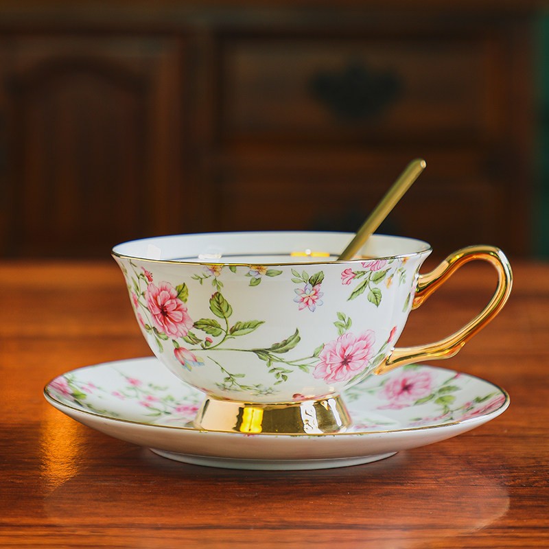 Porcelain Tea Cup Saucer Set, Flower Tea Cup and Saucer Set in Gift Box, Floral Ceramic Coffee Cup with Saucer, Beautiful British Tea Cup and Saucer
