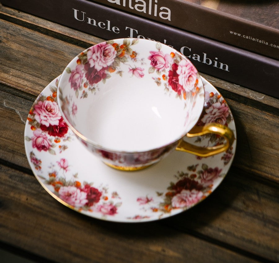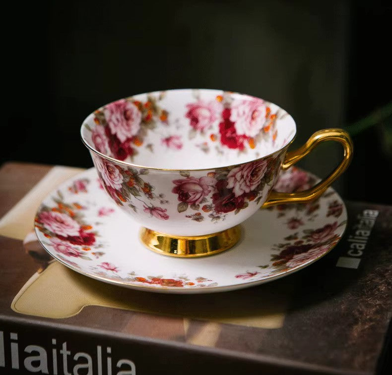 Unique Royal Coffee Cup and Saucer, Elegant Flower Ceramic Cups, Creative Bone China Porcelain Tea Cup Set, Beautiful British Tea Cups-HomePaintingDecor