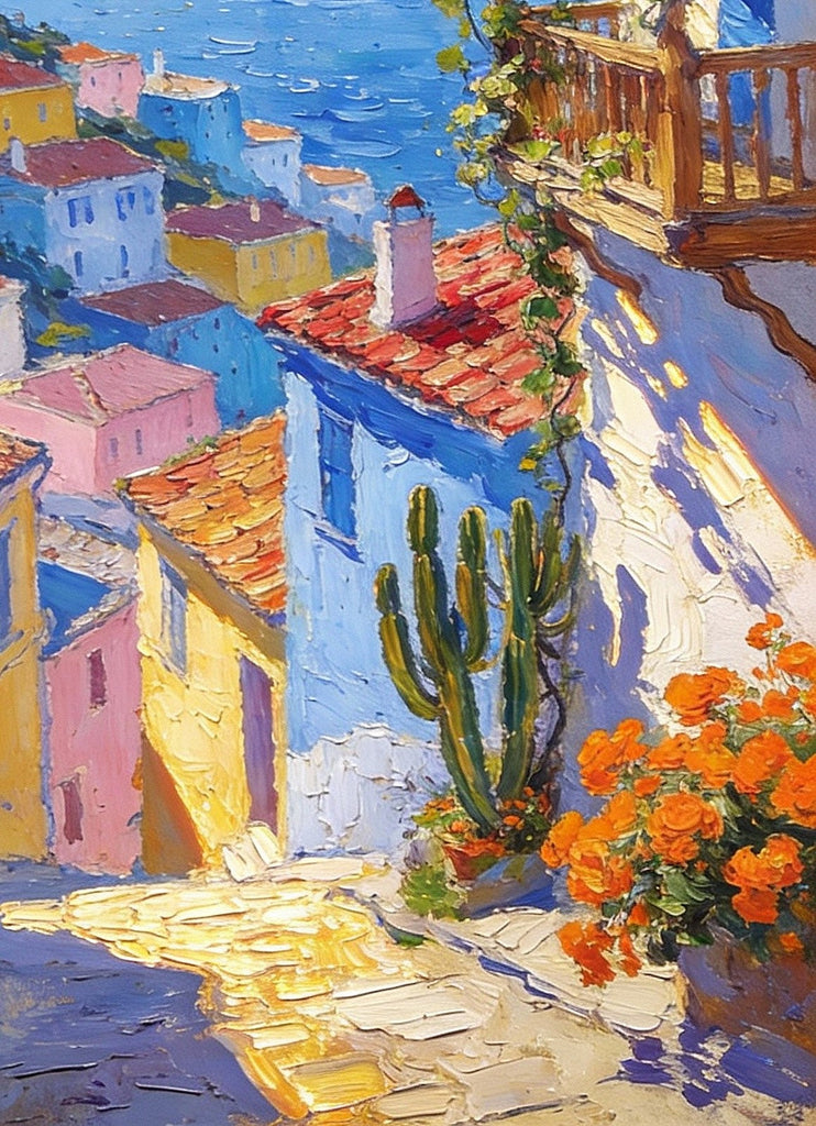 A Seaside Town on the Mediterranean, Seashore Beach, Small Landscape Paintings, Impasto Paintings, Small Paintings on Canvas, Palette Knife Oil Paintings, Original Small Paintings on Canvas