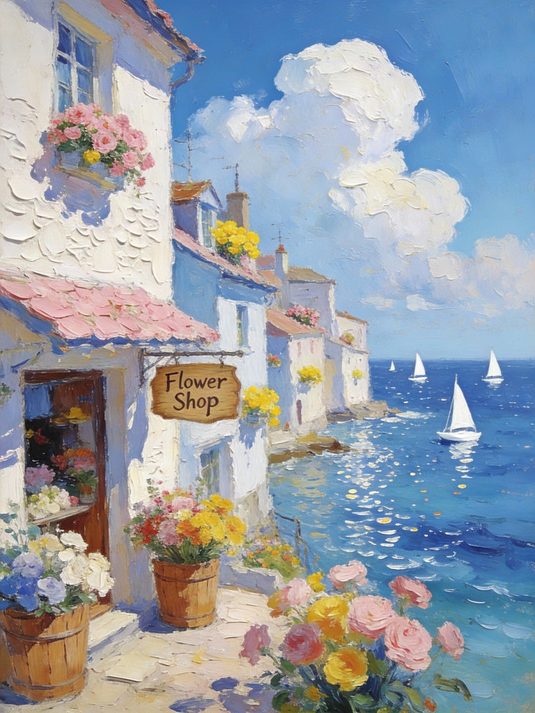 Original Small Paintings, Seaside Flower Shop in Summer, Impasto Paintings, Small Oil Paintings, Small Wall Art Paintings, Landscape Canvas Paintings-HomePaintingDecor