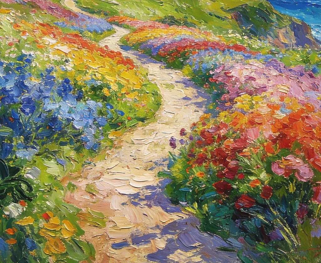 Serene Floral Path, A Luminous Landscape, Original Artwork Small Paintings, Hand Painted Canvas Art, Heavy Texture Wall Art Paintings, On Canvas Small Paintings