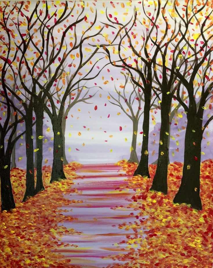 Small Autum Forest Tree Painting, Simple Landscape Artwork, Easy Painting Ideas on Canvas, Simple Acrylic Paintings, Small Canvas Art on Canvas