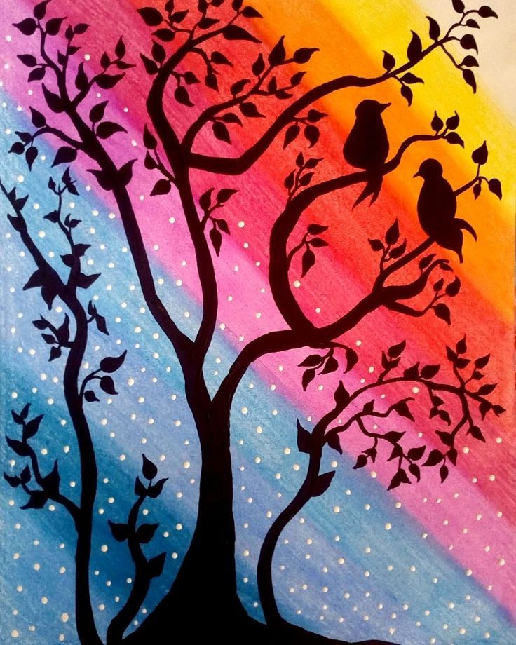 Simple Landscape Artwork, Small Singing Birds Painting, Easy Painting Ideas on Canvas, Easy Hand Paitned Canvas Art on Canvas, Simple Acrylic Paintings