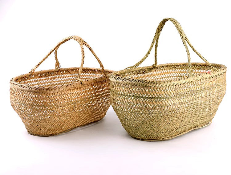 Large Natural Hand-woven Bamboo Basket, Picnic Food Basket with Handle, Lovely Bamboo Baskets for Vegetable, Natural Fruit Basket Kitchen Storage Baskets-HomePaintingDecor