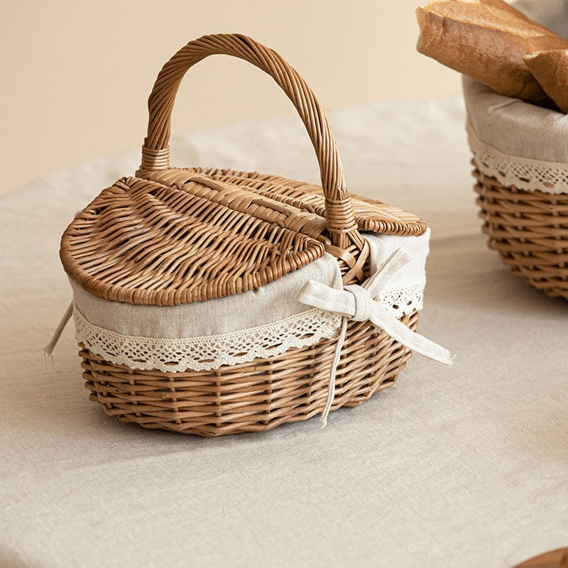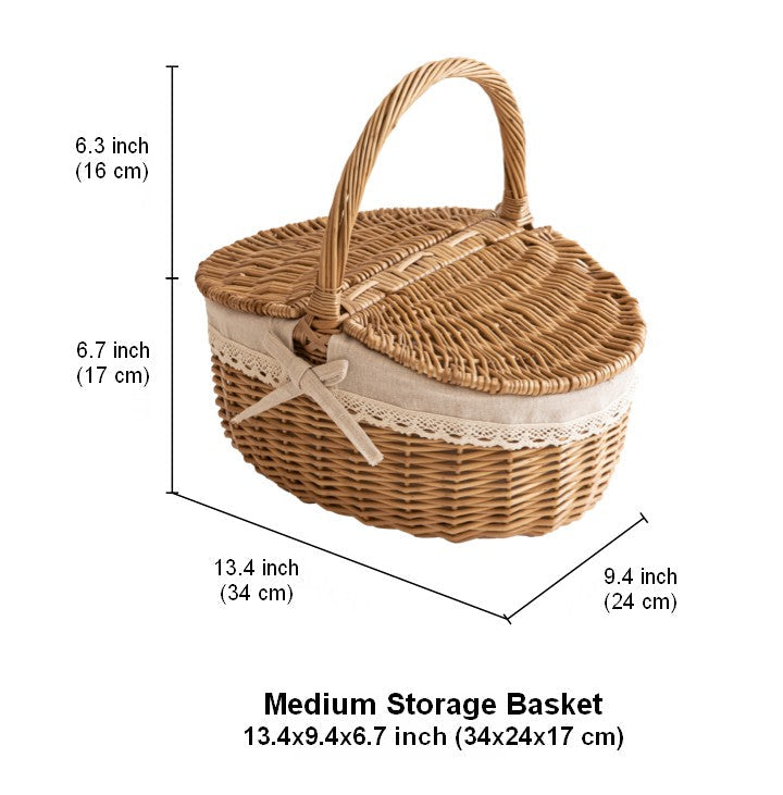 Large Picnic Food Basket with Handle, Lovely Willow Weaving Baskets for Vegetable, Natural Fruit Basket, Kitchen Storage Baskets, Natural Hand-woven Wicker Storage Basket