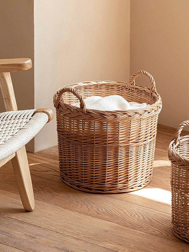 Natural Hand-woven Wicker Storage Basket for Clothes, Large Round Storage Basket for Clothes, Willow Weaving Baskets for Clothes, Extra Large Kitchen Storage Baskets