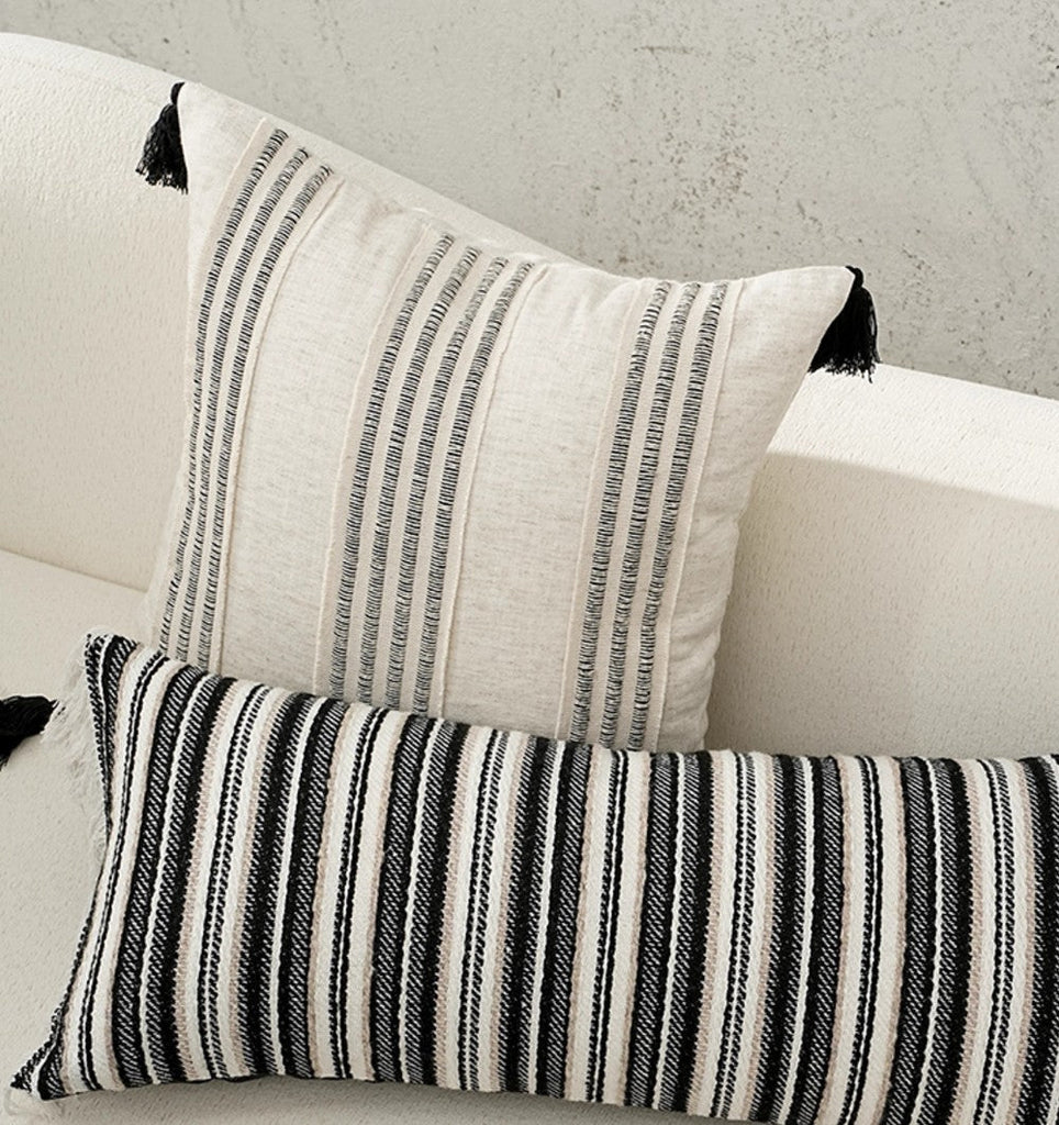 All pillow covers are sewn professionally, over-locked with finished edges to prevent fraying and has invisible zipper enclosures. This provides long lasting, durable covers that will stay straight and beautiful over time, which makes for a clean professional look.