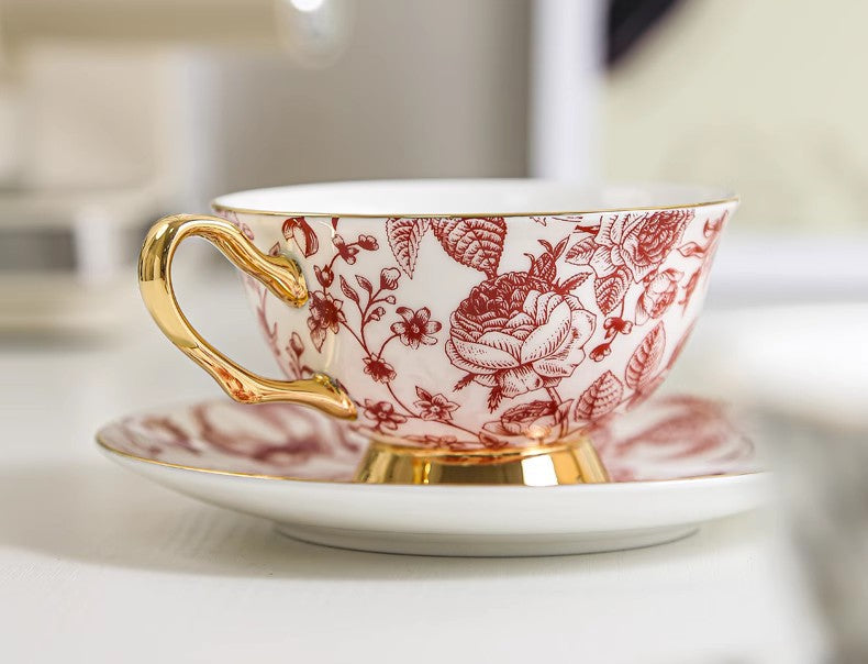Creative Bone China Porcelain Tea Cup Set, Beautiful British Tea Cups, Elegant Flower Ceramic Cups, Unique Royal Coffee Cup and Saucer