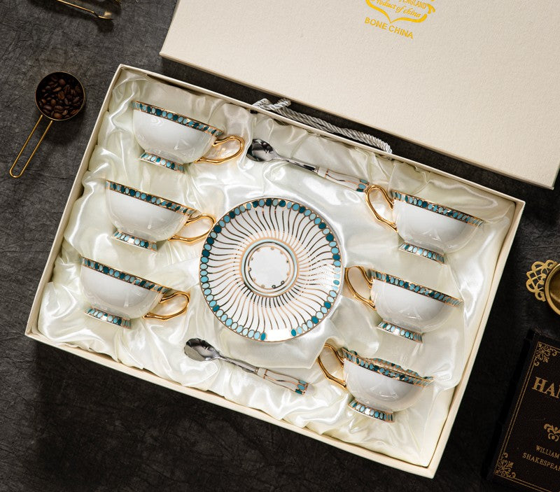 Unique Tea Cup and Saucer in Gift Box, Elegant British Ceramic Coffee Cups, Bone China Porcelain Tea Cup Set for Office, Green Ceramic Cups-HomePaintingDecor