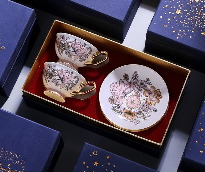 Elegant Ceramic Coffee Cups, Afternoon British Tea Cups, Unique Iris Flower Tea Cups and Saucers in Gift Box, Royal Bone China Porcelain Tea Cup Set