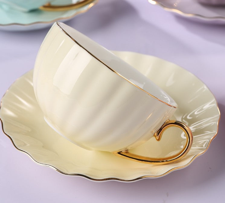 Elegant Macaroon Ceramic Coffee Cups, 6.8 oz Tea Cup and Saucer Set of 2 Cups in Gift Box as Birthday Gift, Beautiful British Tea Cups, Creative Porcelain Tea Cup Set
